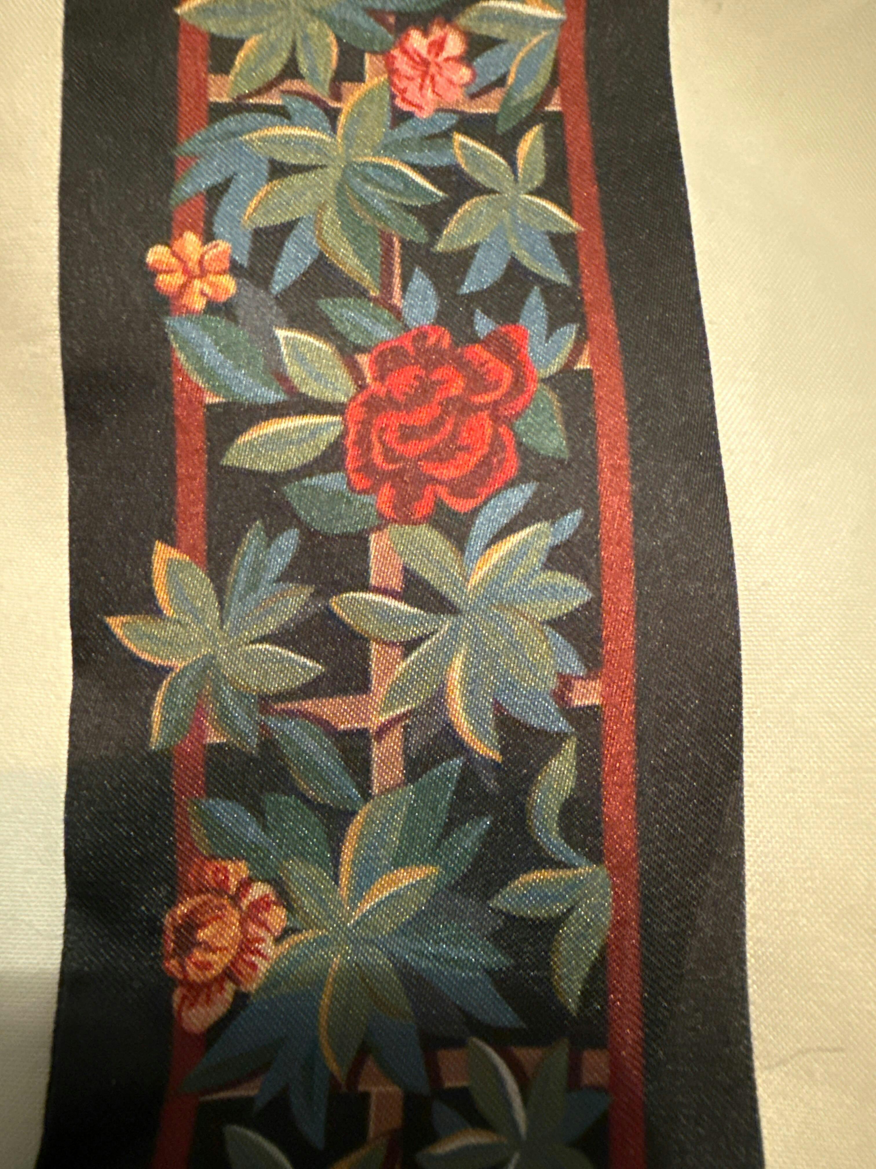 Works as a neck scarf, hair tie, wrist wrap, or bag accent