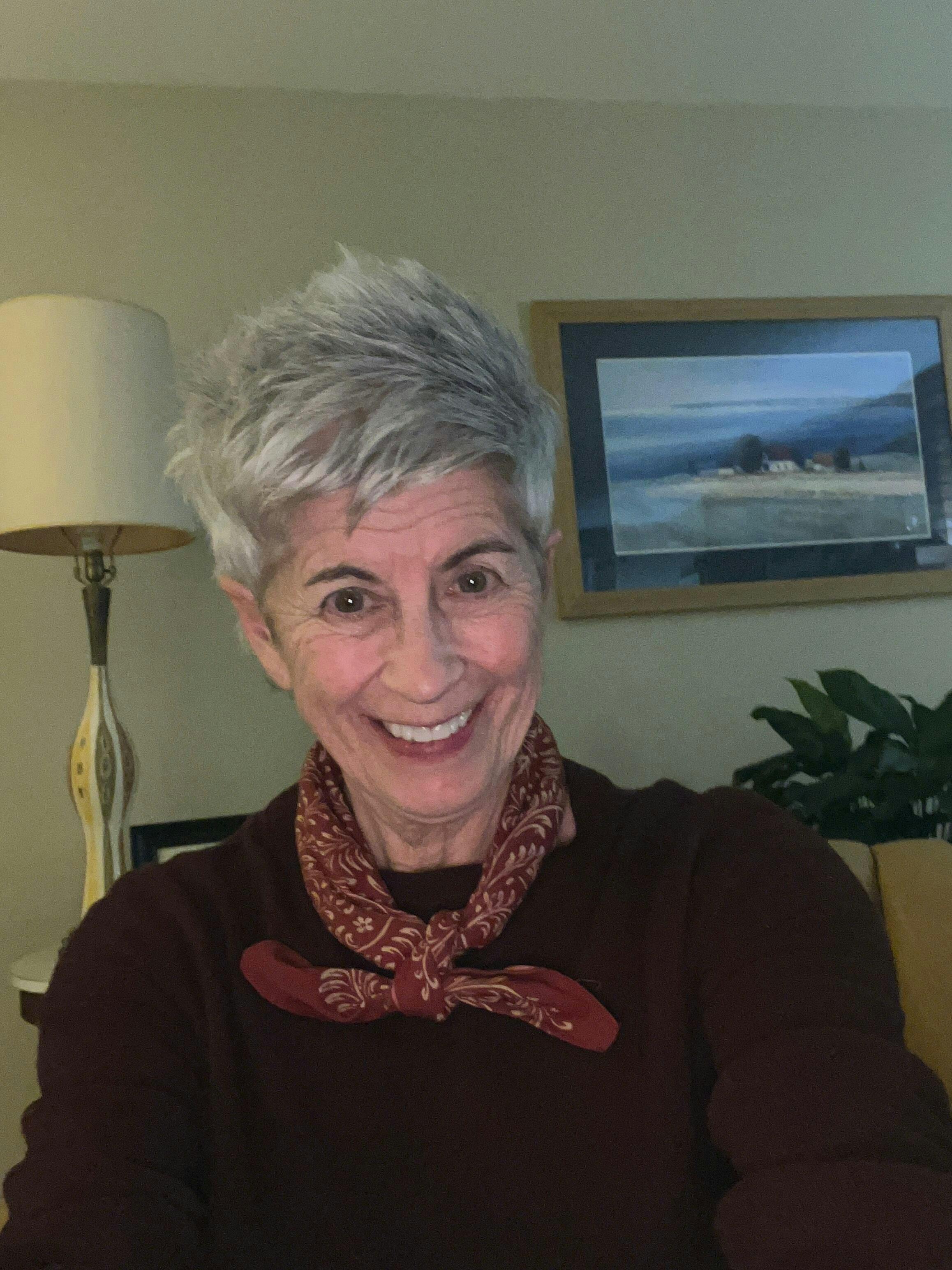 Man wearing a red patterned headscarf against a plain background