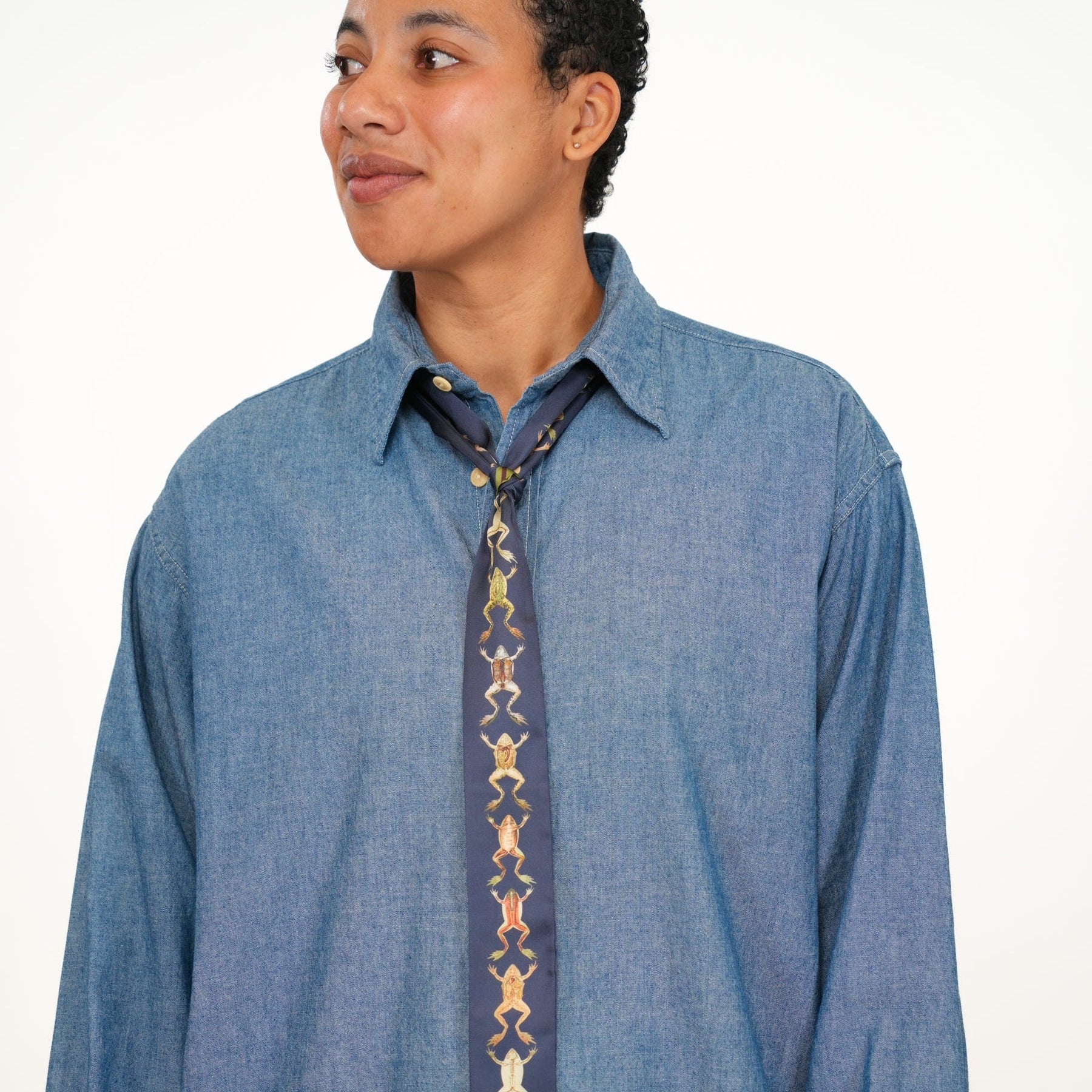 This narrow silhouette adds a pop of pattern without the bulk, perfect for layering under jackets or knotting at the neck for a subtle statement.