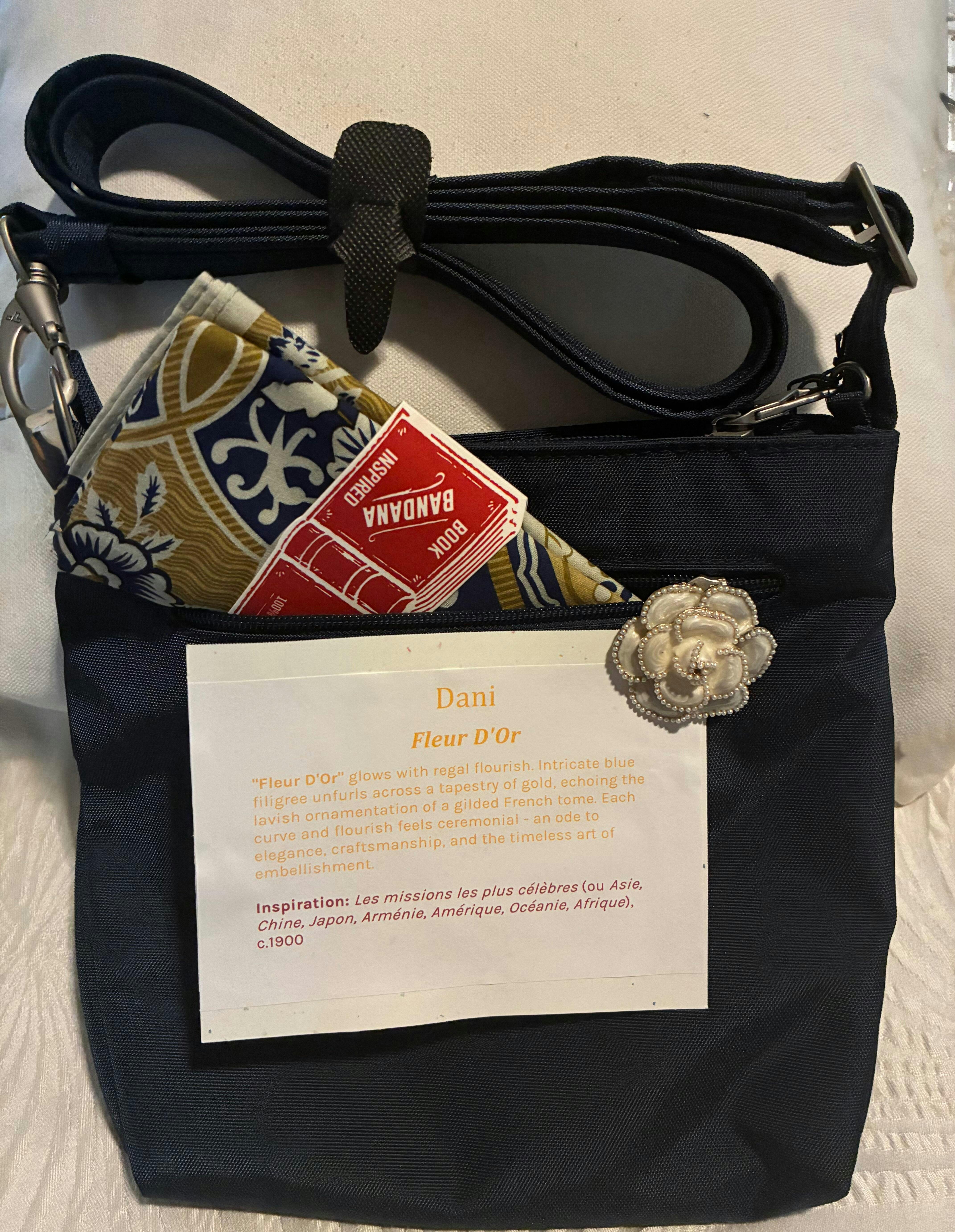 "Fleur D'Or" glows with regal flourish. Intricate blue filigree unfurls across a tapestry of gold, echoing the lavish ornamentation of a gilded French tome. Each curve and flourish feels ceremonial - an ode to elegance, craftsmanship, and the timeless art of embellishment.
