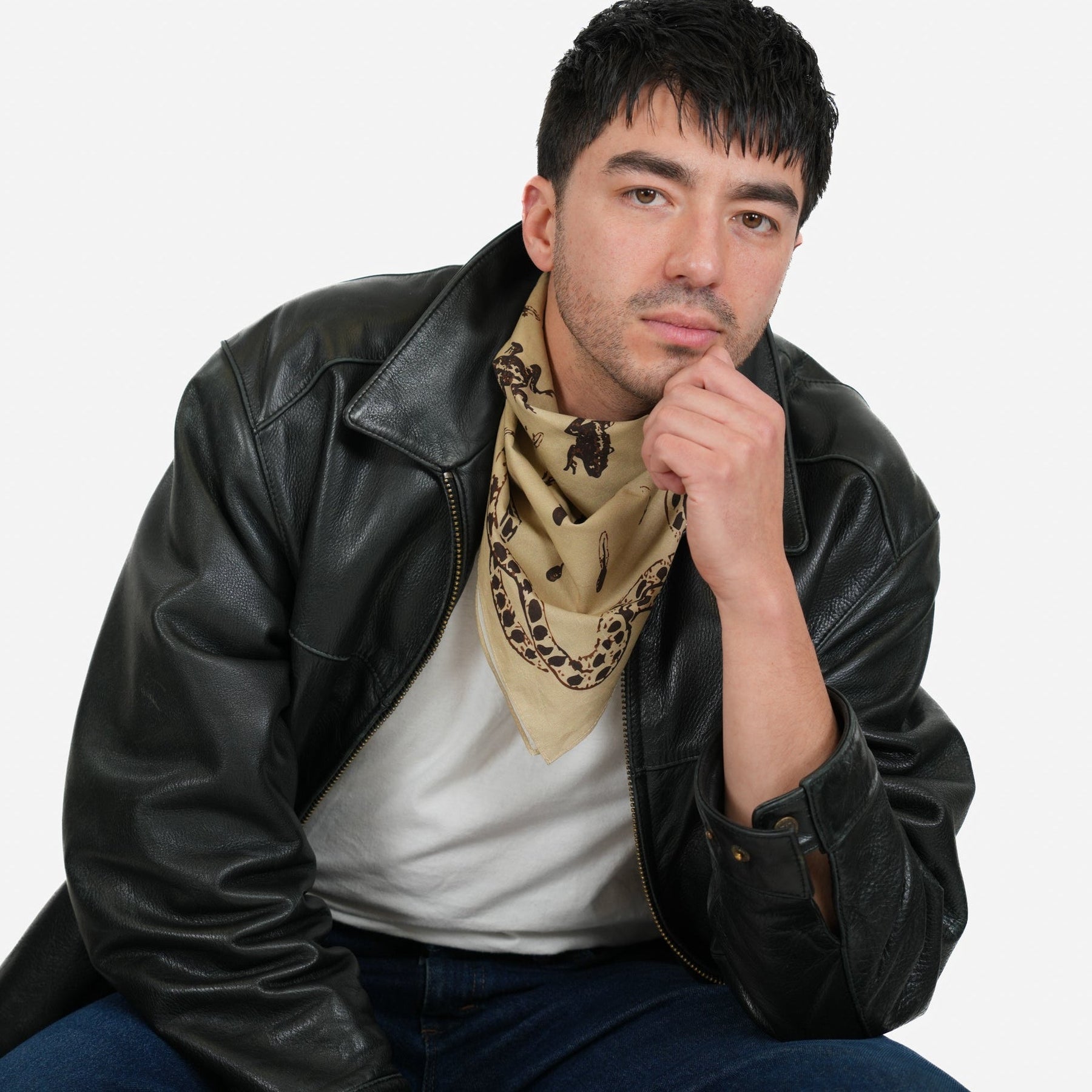 A love letter to the weird and wonderful. Our 'Froglet' bandana captures the full amphibian journey - from wriggling tadpoles to leggy little hoppers to one magnificently unbothered toad holding court at the center. Swirling with scientific charm and a hint of the absurd, it's for anyone who ever kept a jar of pond water on their windowsill and wondered what would happen next.