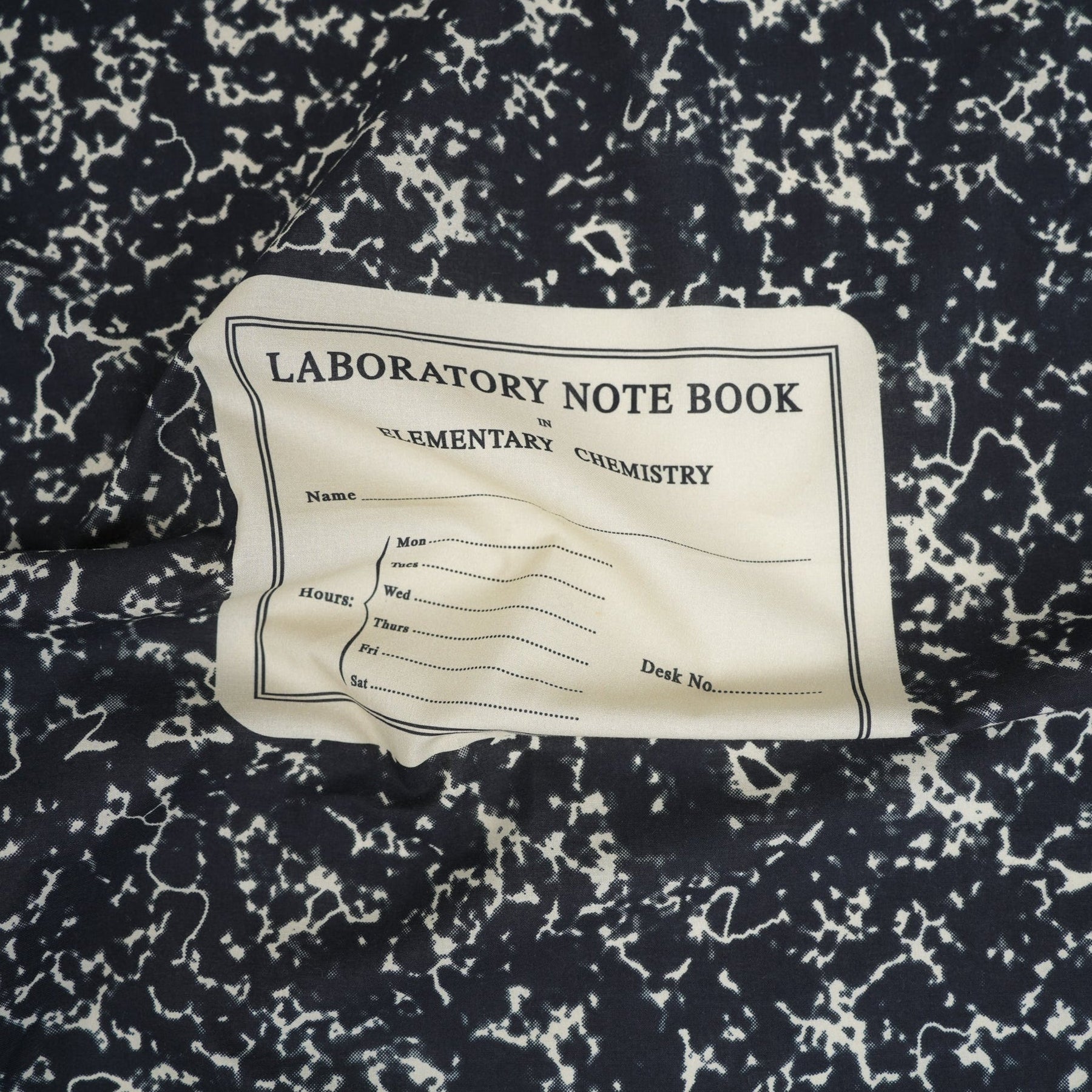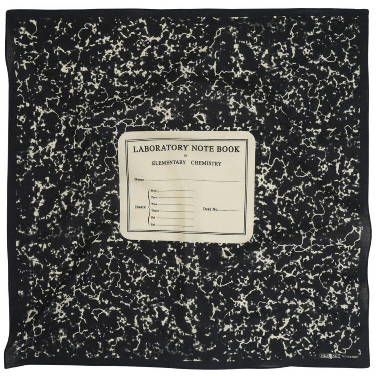 Instantly familiar, impossibly cool. Our 'Notebook' bandana is a love letter to the classic composition book - that iconic black-and-white marble cover you doodled on in chemistry class, now wrapped around your neck or tucked into your bag. Complete with a perfectly vintage "Laboratory Note Book in Elementary Chemistry" label, it's nerdy in the best way. For the person who never stopped being curious.