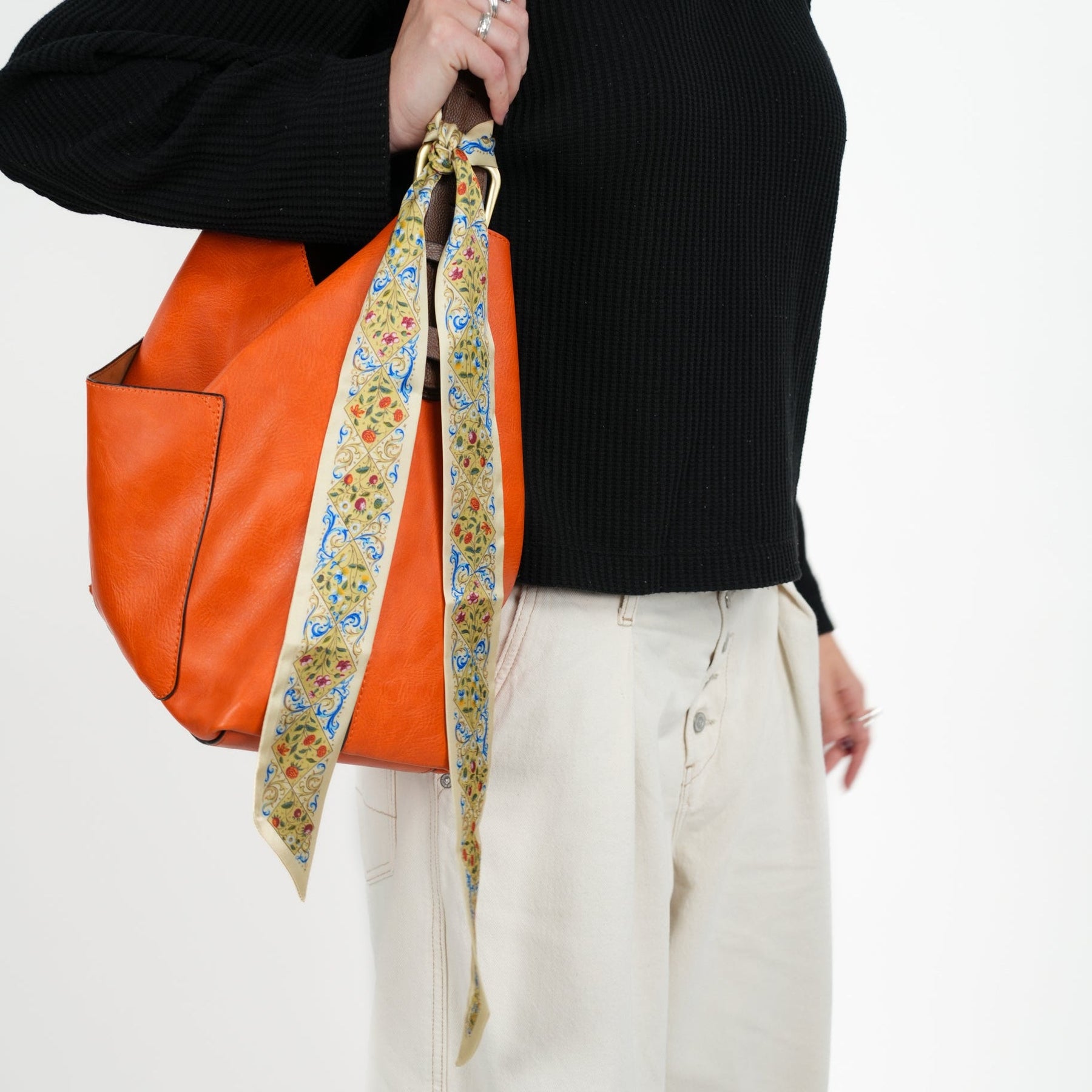 Works as a neck scarf, hair tie, wrist wrap, or bag accent