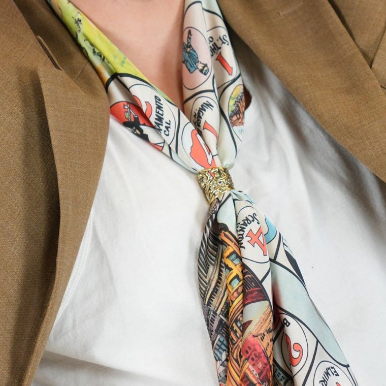 Stand out in style with the perfect addition to your bandana or scarf. Our rings are crafted from solid brass, custom designed by a renowned Spanish jewelry artist specifically for use on silk scarves and bandanas.